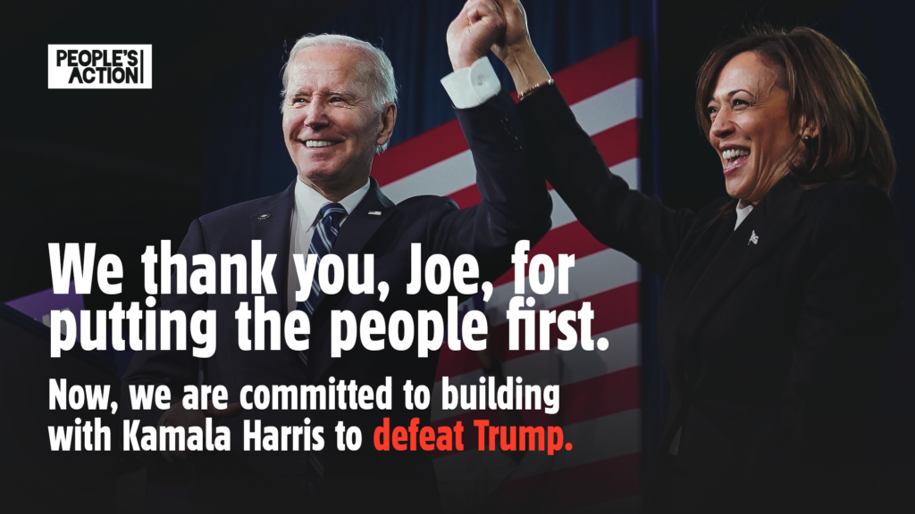WASHINGTON, D.C.–Following President Biden’s decision to exit the 2024 presidential race, People’s Action today congratulated the president for leading the most progressive administration in modern history. Looking ahead to November, People’s Action renewed its commitment to blocking Trump’s Project 2025 takeover plot and building toward its long-term vision under a Harris administration.
